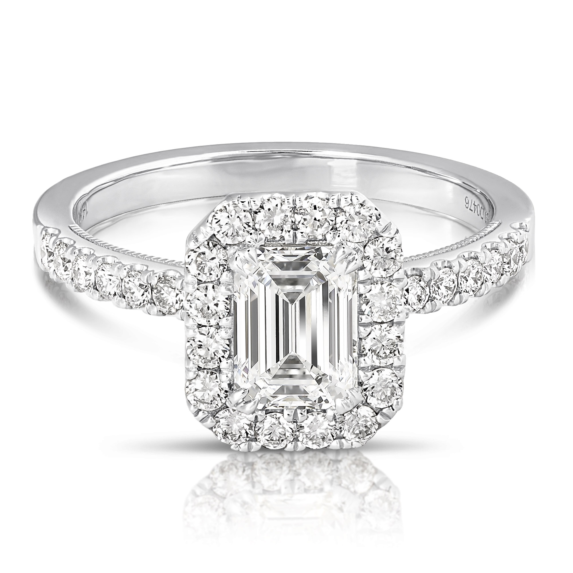 1 CT CENTER EMERALD CUT HALO DIAMOND ENGAGEMENT RING CEC.100-W