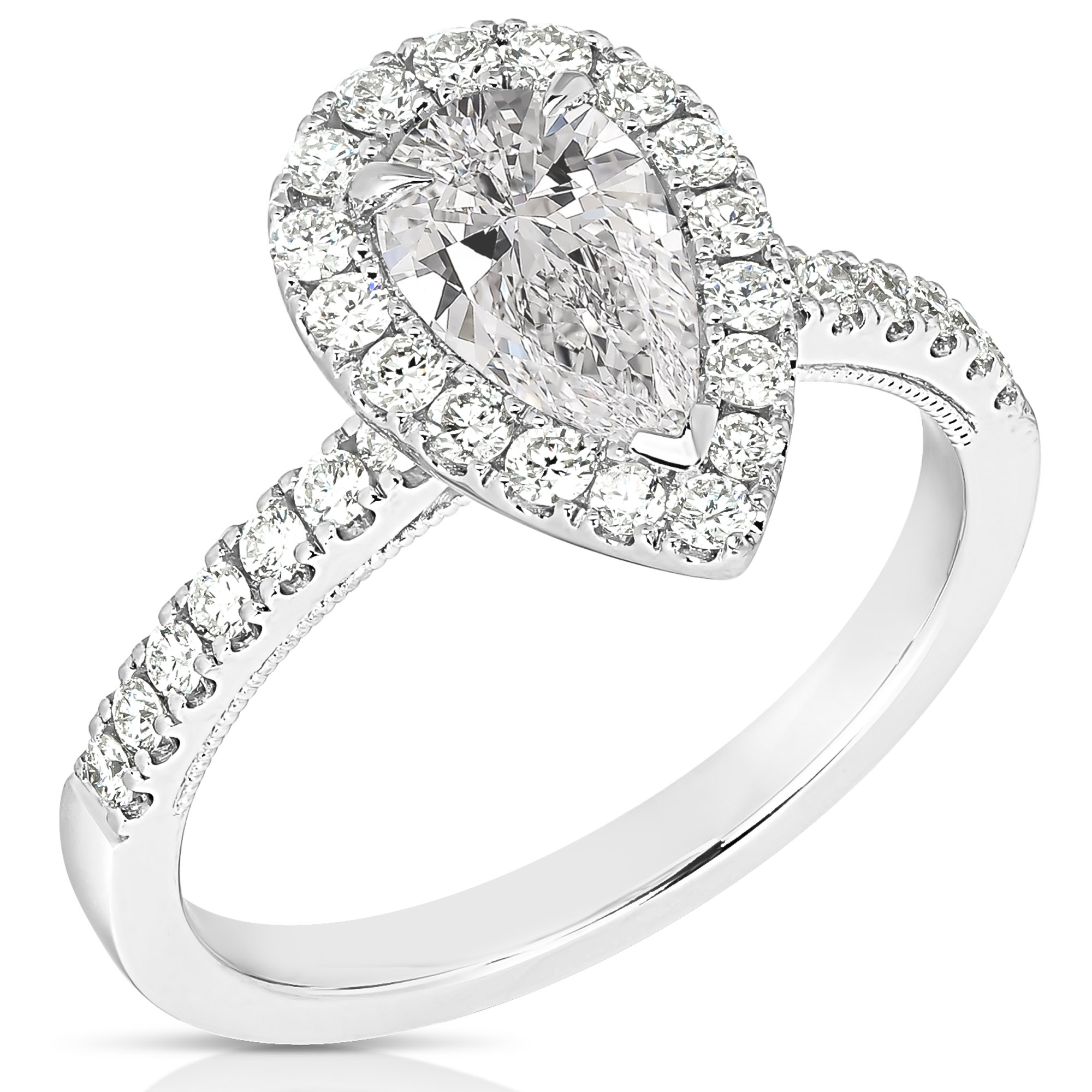 1 CT CENTER PEAR SHAPE HALO DIAMOND ENGAGEMENT RING CPS.100-W